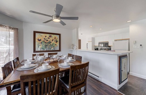 Enjoy our fully equipped kitchen for home-cooked meals and, in summer, relax on the spacious terrace overlooking the pool and Mont-Tremblant.