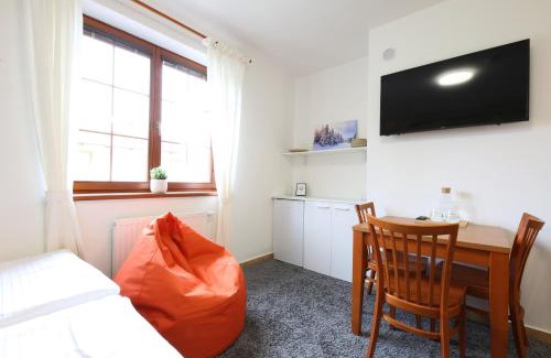 Providing a garden, Úpatí Ještědu - apartmány provides accommodations in Liberec. With free private parking, the property is 4.4 miles from Ještěd and 19 miles from Zittau Goerlitz University of Applied Sciences. All units are equipped with a flat-screen TV and a fully equipped kitchenette with a microwave, a fridge, and kettle. All rooms include a coffee machine, a private bathroom, and free Wifi, while some rooms here will provide you with a balcony and some have mountain views. At the condo hotel, all units include bed linen and towels. During the colder months, guests can enjoy winter sports in the surrounding area. Vaclav Havel Prague Airport is 76 miles away.