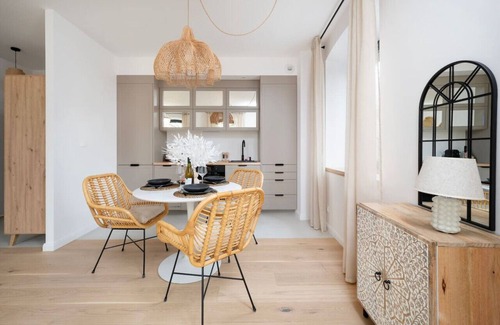 Welcome to your stylish and comfortable 40m² apartment located on the first floor, perfect for up to two guests. This charming space features two cozy rooms, including a bedroom with a comfortable queen-size bed and a living area with a sofa. Step out onto your private balcony and enjoy the city view or take advantage of the private parking spot for added convenience.