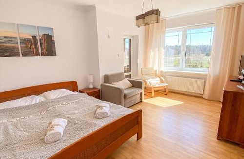 Situated in Nowęcin, 2.7 km from Leba Beach, Łeba House features accommodation with a garden, free private parking, a shared lounge and a terrace. The property is set 29 km from Teutonic Castle in Lębork, 1.8 km from Illuzeum Interactive Exhibition and 2.2 km from Sports Hall. The accommodation offers a shared kitchen and free WiFi throughout the property. At the guest house, all rooms are equipped with a wardrobe. Łeba House provides some rooms with garden views, and every room is fitted with a kettle. At the accommodation rooms are fitted with bed linen and towels. Popular points of interest near Łeba House include Leba Railway Station, Łeba Park and John Paul II Park. The nearest airport is Gdańsk Lech Wałęsa Airport, 89 km from the guest house.