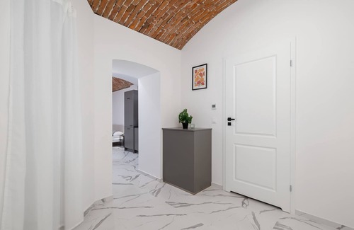 This modern studio on Łobzowska Street 7 is a perfect choice for a couple or a solo traveler seeking comfort, style, and a prime location in the heart of Kraków. The interior combines functionality with distinctive character – a large, comfortable bed ensures restful sleep, while the exposed brick ceiling and bright design create a warm, inviting atmosphere with a touch of elegance. The kitchenette is fully equipped to make cooking a pleasure, with an induction hob, microwave, dishwasher, fridge with freezer, and a complete set of cookware and utensils that let you prepare anything from a quick breakfast to a cozy dinner. The dining table with comfortable chairs is perfect not only for enjoying meals but also for working or planning your day. The stylish bathroom features a spacious walk-in shower, a large mirror, elegant fittings, fresh towels, and complimentary toiletries. A built-in washing machine, discreetly located in the hallway, adds convenience, especially for longer stays. Fast Wi-Fi and a 50-inch Smart TV complete the space, allowing you to relax after a day of exploring. This is a thoughtfully designed studio offering everyday comfort, aesthetic details, and a peaceful retreat in the heart of the city.
