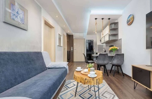 The flat is located on Luzycka Street in the seaside town of Swinoujscie. The apartment is located in an attractive area that is well connected to the rest of the city. The sea is only 2.8 km away. This is an amazing location providing peace and tranquillity, with access to shops and great restaurants. The "Usedom" shopping centre can be reached on foot in 5 minutes, the "Bielik" ferry in 10 minutes and the Promenade with its beautiful sandy beach in 15 minutes. If the temperature does not encourage outdoor seaside adventures, you can go to the Baltic Park water park (2 km from the apartment). In the immediate vicinity there are numerous shops, cafés and restaurants offering a wide range of fish specialities and world cuisine. Families with children will certainly appreciate the park with playground 500 m away as well.