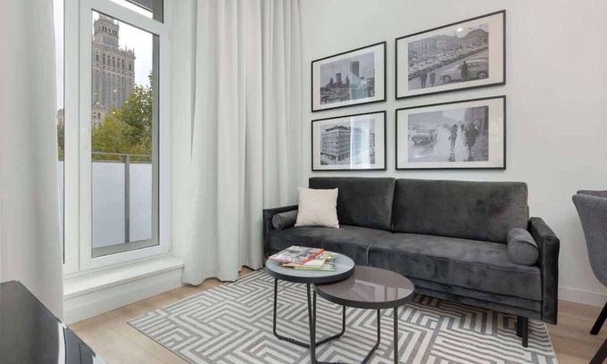 Modern apartment located on Swietokrzyska Street in the very center of Warsaw - from the windows you can admire the iconic panorama of the capital with the famous Palace of Culture and Science.