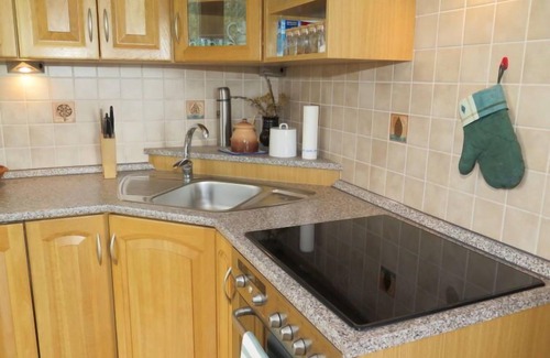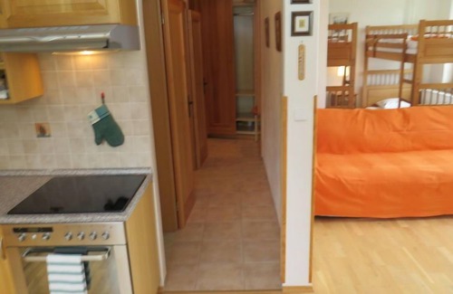 1-room studio 40 m2. Bright, comfortable furnishings: entrance hall. Open living/sleeping room with 1 double sofabed and 2 x 2 bunk beds, dining table and satellite TV (flat screen). Exit to the loggia. Kitchenette (oven, dishwasher, 4 ceramic glass hob hotplates, kettle, freezer). Bathroom, sep. WC. Heating. Balcony 10 m2. Very beautiful view of the valley and the countryside. Facilities: washing machine. Internet (WiFi, free). Please note: suitable for families. Non-smokers only.