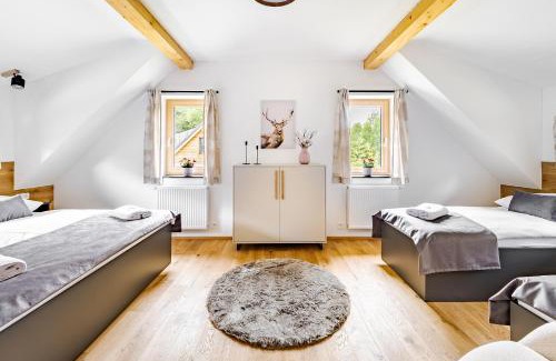 Šumavské Hájenky - Lipno enjoys a location in Horní Planá, 20 miles from Rotating Amphitheatre and 22 miles from Main Square in Český Krumlov. This recently renovated villa is located 20 miles from Castle Český Krumlov and 20 miles from Lipno Dam. There's an outdoor fireplace and guests can access free Wifi and free private parking. The villa provides guests with a terrace, garden views, a seating area, a flat-screen TV, a fully equipped kitchen with a dishwasher and an oven, and a private bathroom with bath and a hair dryer. A microwave, a toaster, and fridge are also featured, as well as a coffee machine and a kettle. At the villa complex, the units come with bed linen and towels. Guests at Šumavské Hájenky - Lipno can enjoy fishing nearby, or make the most of the garden. Ceske Budejovice Airport is 35 miles away.