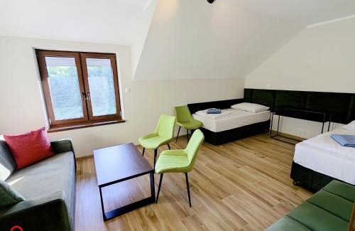 Żywiec Holidays in Gilowice provides accommodations with a garden, barbecue facilities, and a shared lounge. This property offers access to a pool table, table tennis, and free private parking. On clear days, guests can head outside to enjoy the guest house's outdoor fireplace, or simply kick back and relax. Selected rooms are equipped with a fully equipped kitchen with a dishwasher, an oven, and a microwave. At the guest house, every unit includes a private bathroom. For guests with children, the guest house provides outdoor play equipment. An indoor play area is also available at Żywiec Holidays, while guests can also relax on the sun terrace. Auschwitz is 30 miles from the accommodation, while Energylandia Amusement Park is 27 miles away. John Paul II International Kraków–Balice Airport is 45 miles from the property.