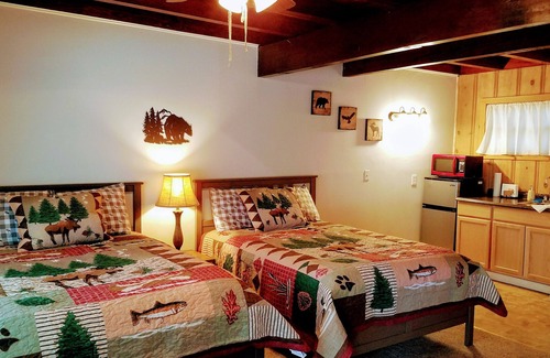 Located at the historic Washoe Motel. Feels like a studio apartment with a cabin feel . This pet-friendly unit with knotty pine walls, kitchenette with microwave, refrigerator, hot plate and coffee maker. Can accommodate 4 people and a pet! A great budget pet friendly option in Tahoe.