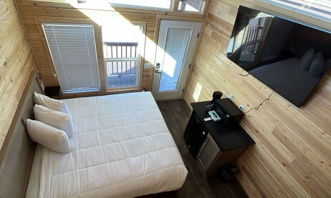 Stay entertained with the smart TV, ideal for streaming your favorite shows on Netflix, YouTube, or Amazon Prime, just as you would at home (sign in using your own login). The mini-split system keeps you comfortable year-round, adjusting to your desired temperature. A mini-fridge is conveniently located for storing your ice-cold drinks while you enjoy the sunset from the porch.