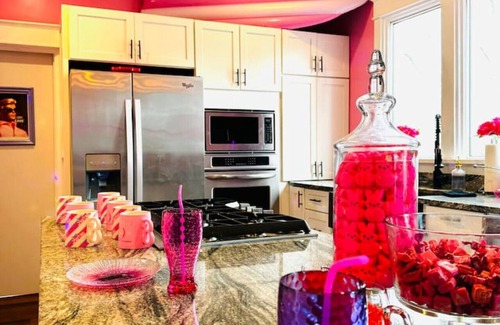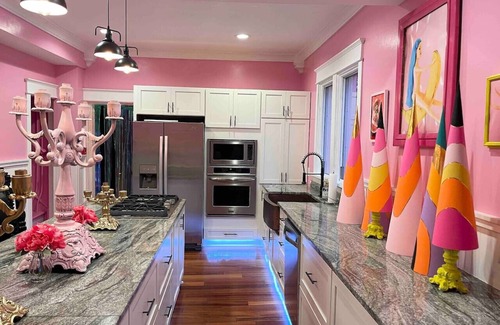 Experience a whimsical stay by renting half of our enchanting adult Barbiecore-themed house! This captivating retreat features three beautifully styled bedrooms with four comfortable beds, two luxurious bathrooms, and a relaxing hot tub for your enjoyment. Perfect for a fun getaway with friends! Need more bedrooms, no problem we can add on more of the house, if more beds are needed- for an extra fee.