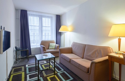 The large suite 1.3 Levi is located in the heart of Freiburg in the historic district of Bourg (the old town of Freiburg), in a building that dates back to the founding years of the city (800 years). It is right in the center, 10 min. walk from the train station, 10 min. walk from the Sarine (river) and close to everything. It is an apartment suitable for families, couples or a single person. Availability to accommodate 4 people. Furnished apartment with bathroom, kitchenette, free wifi, television and hotel service.