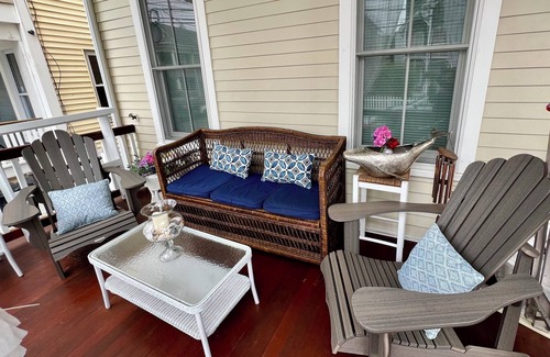 This is a perfect retreat to make your summer get away one for the books! 1.5 blocks to the beach and boardwalk. Boasting a covered front porch with AC! This most charming spacious apartment is fully furnished including , 1.5 roomy bathrooms, full kitchen, living room with a brand new queen sleeper sofa, with as well as a central living room with a tv. With amenities such as AC, WiFi, washer dryer, you have the perfect retreat for unwinding after a day of beaching or exploring. Centrally located to the beautiful, historic town of Ocean Grove, and a short walk into Asbury Park!