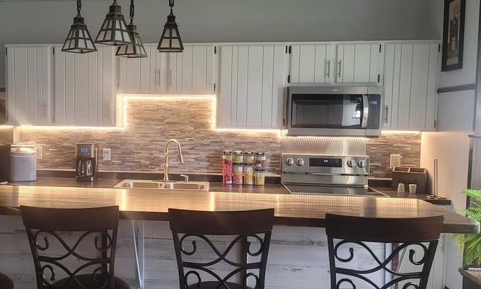 Our guest rave about our new large kitchen fully stocked with small appliances including tools from Kitchen Aid, Tools of the Trade Cookware and Bakeware to create delicious dishes.