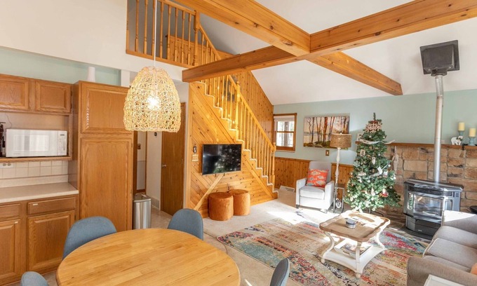 Unwind at this tree studded lakefront cottage. So much to do in every season, Lounge by the wood pellet fireplace with a book, dine underneath the stars on the large deck or kayak & fish on the unspoilt lake. Minutes from fishing on Pere Marquette and the Manistee hiking trails. Yard games, 2 fire pits, 3 kayaks and fishing boat. Huge wraparound deck for grilling and relaxing.