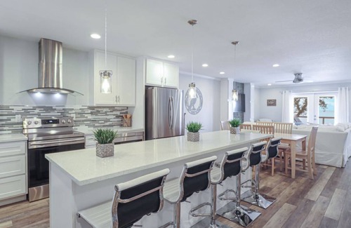 The property has beautiful modern furnishings and fixtures and is not cluttered! It contains 3 comfortable master suites with comfortable and high-end beds in each room. The kitchen is fully-equipped, and open to the dining and living area, for ample seating.