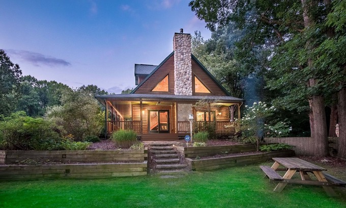 We're offering the main floor of this beautiful cozy cabin on weekday's during the off season. Beautiful setting on two acres next to Grand Mere Park, and within a few miles from the wine trails, craft breweries, and great restaurants. Great place to escape the city and unwind. Will accommodate two guests.