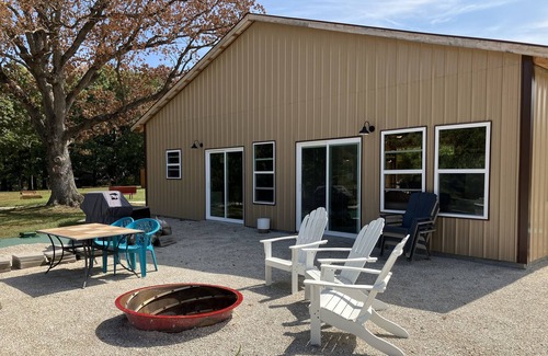 This cabin is at Needmore RV & Campground, Fair Play, MO. Newly developed campground 1/4 mile from Stockton Lake. Cabin includes a fire ring and charcoal grill. Inside cabin includes is a separate bedroom with Queen Bed, one Twin and one Double bed in the loft, and sofa makes into a double bed. All bedding, blankets and pillows included. Kitchen has electric stove with oven, microwave, refrigerator, small coffee pot and all dishware and cookware. All dishcloths and towels included. Bathroom has sink, toilet and large shower with all towels and washcloths. Quiet country atmosphere with RV and Tent Sites also. Event Center available to reserve for parties, reunions, weddings. Inside has a beer & wine bar open Thurs - Sun to 8pm. Live music to be scheduled monthly. Car shows certain times of the year. Outside game area includes horseshoes, quoits and corn hole. General Store, Ice, Laundry Room. Plenty of nature hiking. Outside storage area for extra vehicles or trailers for a minimal fee.