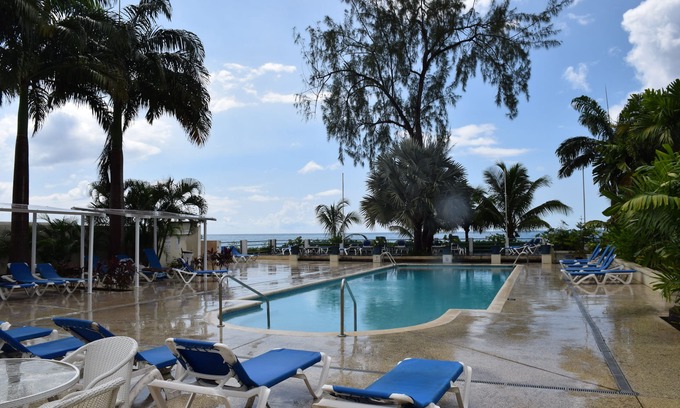 A one bedroom apartment located on a very popular condominium complex. Set within well - landscaped gardens and have the convenience of a large central swimming pool ( 90 feet ) and a 24 hour reception and security. Launderette on the property. 5 minutes walking distance to the beach, shops, banks and all Holetown amenities.