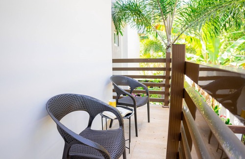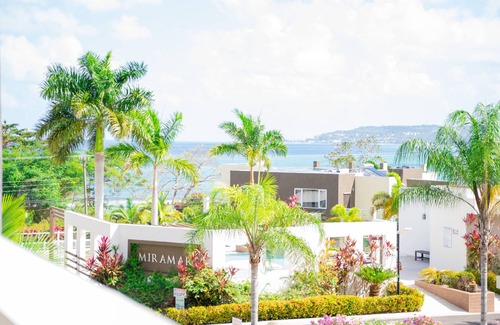 Welcome to our escape where we encourage you to exhale. This one bedroom apartment in the secure community of Miramar is located 15- 20 minutes outside the vibrant 2nd city of Montego Bay, St. James Jamaica. Surrounded by luscious vegetation and greenery the community offers an opportunity to breathe deep and relax in a quiet quaint environment, with calming sea breeze and waves just a stone throws away.
