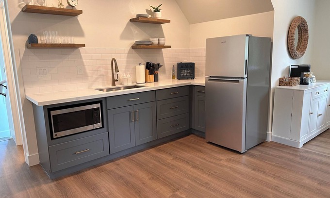 Enjoy the tranquility of our quiet neighborhood and the ease of modern amenities, including Wi-Fi, a large kitchenette, and TVs in both the main room and bedroom.