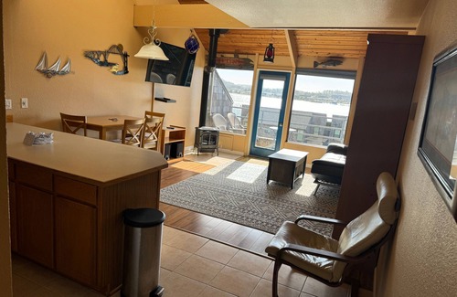 Enjoy tranquil waterfront views from your private balcony at Embarcadero Resort. Our modern suites, including the 650 sq. ft. One Bedroom Queen Suite/Condo, offer everything you need for a relaxing vacation by the water.