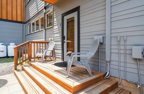 This unit is on the backside of the property with it's own gated entrance. This unit shares a wall with Alpine Modern, but the interior door remains locked by Management if not rented in addition to Alpine Modern. You have your own quaint fenced courtyard with a small deck area and your own BBQ to use.