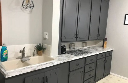 Rest assured the neighborhood is safe and RING is installed to the left of the front door when you walk in. When you walk through the front door you will be in the living room- brand new flooring installed fall 2021. 55 inch flat screen smart Tv- feel free to sign into your own Netflix or smart app account. Through the living room is the kitchen. To the left of the kitchen is the first bedroom (twin bed) Memory foam mattress . Up the stairs (12 stairs) are two small bedrooms (queen bed & twin bed. ) . At the top of the stairs there is a AC window unit(this is NOT a central air home) so feel free to turn on if the home gets too warm.