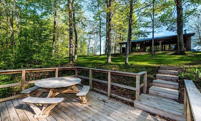 Come and enjoy a favorite Brown County cabin! All newly renovated and redesigned, Homestead Cabin is a full blend of new convenience and old time charm! The great room contains a wonderful view of the gorgeous lake.