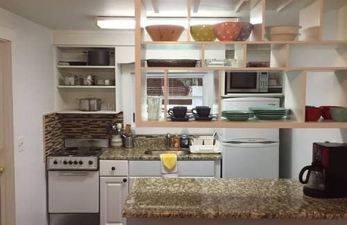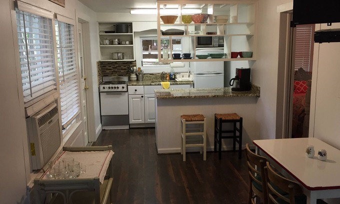 Cozy 1 BR bungalow. 1 bathroom with shower, Bedroom has queen bed. Living area has sleeper queen size sofa. Full kitchen with all utensils and tableware. Small house friendly pets considered. Internet & televisions in bedroom & living room. Small but comfortably appointed cottage. Convenient access to beach. Located five blocks north of the Coast Guard Station Beach Access in quiet neighborhood with ample parking.