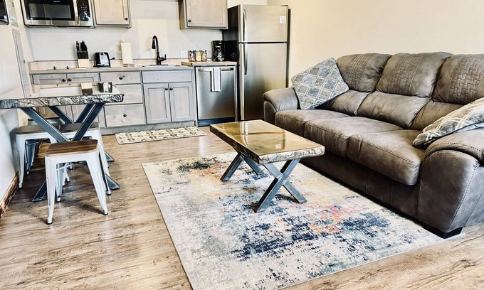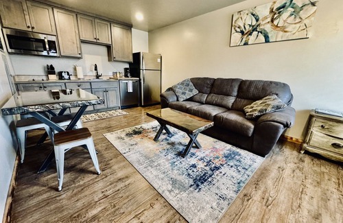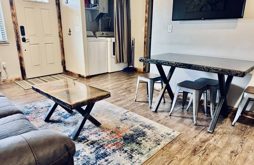 Experience comfort in our pet-friendly, ADA single-level, modern rustic townhouse – an ideal retreat for couples! Angel Rock Rentals Of Moab, conveniently situated 4 miles South of downtown Moab, offers a tranquil escape. Rest peacefully in our plush queen-size bed and optimize your budget by utilizing our well-equipped kitchen for cost-effective and delicious simple meals or use the portable BBQ grill for memorable outdoor picnics. Revel in breathtaking valley views, captivating sunsets, or venture on an early morning hike on the nearby Hidden Valley Trail.
