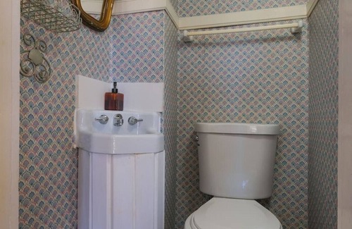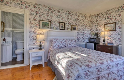 Suite 1 is a cozy room perfect for two with a queen bed, half bath (toilet and clawfoot tub), television, coffee pot, mini-fridge, hair dryer, iron/ironing board, and free wifi. All guests have full access to the indoor kitchen downstairs in the main building, the outdoor kitchen and grill, full access to the common-use hot tub, and the bonfire pit on the back lawn. So, even though suite 1 may be small and cozy, it`s bursting with charm and surrounded by fun!