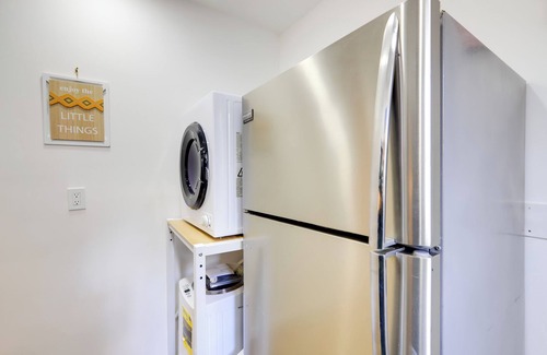 A living room, air conditioning, and a ceiling fan are featured at this 2-bedroom rental. Connect to the free WiFi, or get cozy in front of the TV. The kitchen is equipped with an oven and a stovetop, as well as a microwave, cookware, and paper towels. And there's a washing machine, so you can even pack a bit lighter. Other amenities include bed sheets, an ironing board, and heating.