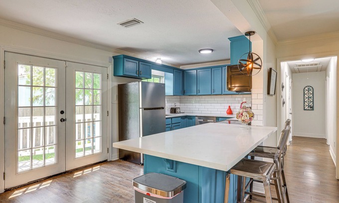 Located in Galveston, this welcoming cottage brings it all within your reach. With the property's convenient onsite parking, you'll be ready to make the quick 2-minute drive to Moody Gardens or the 4-minute drive to Galveston Seawall.