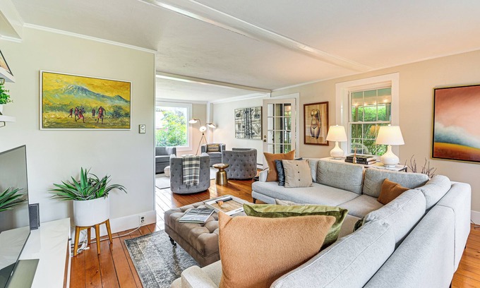 Breathe in the fresh air and let creativity flow at this 4-bedroom, 2.5-bathroom Richmond vacation rental home — an inviting haven for solo wellness retreats, romantic escapes, or group getaways. Stroll nature trails that begin at your doorstep, then unwind on the patio for al fresco evenings paired with a glass of local wine. Here, history and tranquility meet, offering a balance of adventure and rest.