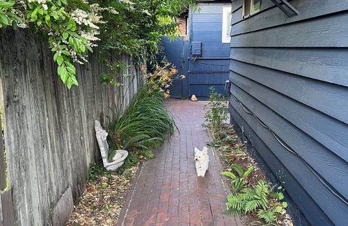 You can expect a clean and cozy stay in this renovated, small, studio apartment. This space has a queen sized Murphy bed. When folded up, there is a dining table/desk space. Street parking is readily available and the private entrance is tucked away behind a gated yard entrances.