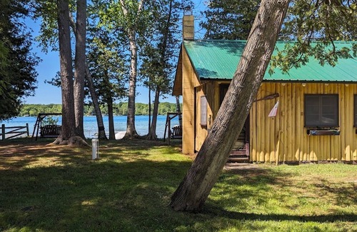 This charming, rustic two-bedroom, one-bathroom log cabin is located on Birch Lake near Elk Rapids. It's an ideal vacation spot for a small family or a couple. You'll love the clear blue colors and firm sandy bottom of this all-sports lake. The main area of the home consists of an open living room, kitchen, and dining space.
