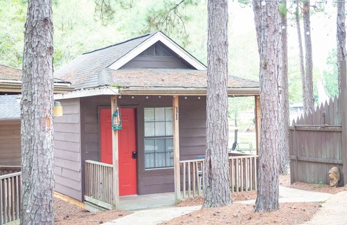 Our Cabins at Cowboy Town will take you back to your treasured memories of childhood summer camp days. These one-room cabins are furnished with a queen, two twins, or bunk beds, are all nestled under the pines and are conveniently located at the center of the ranch with just a quick walk to our General Store, Game Room, Hitching Post and Shower Houses.