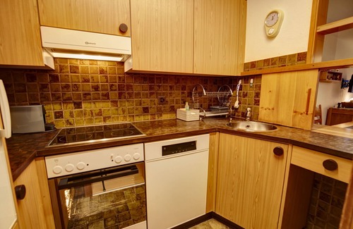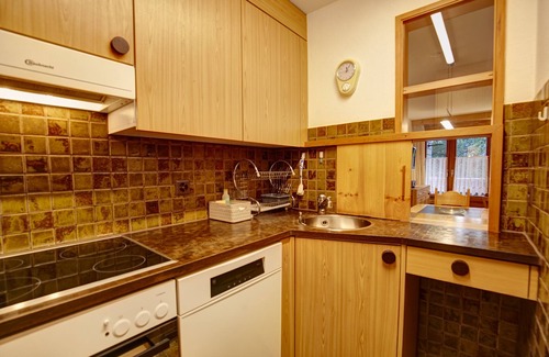 1-room flat on the 3rd floor, 52 m2. Balcony, south facing position, with mountain view. Entrance with wardrobe. Bright, cosy living/dining room with 2 wall cupboard beds (90x200). Bath/WC/lavabo. Radio, TV and telephone. Free WLAN connection. Kitchen with hatch to living room with oven and dishwasher. Nespresso coffee machine. Fondue and raclette can be rented free of charge at the reception. Garage parking available for a fee (Fr. 5.-- per day in summer and Fr. 8.-- per day in winter). Ski and boot room for shared use. Non-smoking flat.