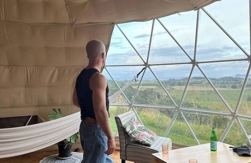 Ever wanted to experience a geodesic dome? Less than 2 hrs from Auckland you can escape to this rustic glamping dome in a rural setting near the coast. Situated on top of a hill, there are amazing rural & sea views, thousands of stars in a clear sky, with outstanding sunrise and sunsets. The dome contains a gorgeous bedroom, lounging space, & adjacent entranceway. Nearby is your own outdoor composting toilet and luxurious shower.