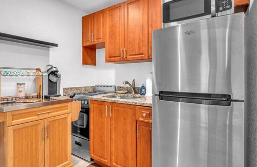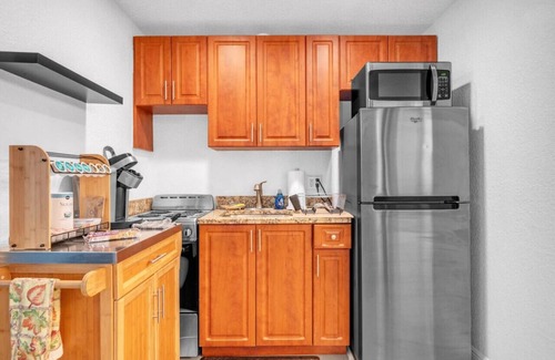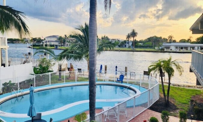 Truly relaxing! Located on the Intracoastal Waterway and a 10 minute walk to one of the best beaches in South Florida. Sleeps 2. Lots of patio space, ice-cold air, WiFi and cable, brand new TV. Free YouTube TV. Full kitchen, BBQ, pool and dock. and laundry facilities on property. Walk to restaurants, nightlife, and shops. Or, just stay and relax to a phenomenal view. Watch multi-million dollar yachts go by, jet skiers, sightseeing boats, kayakers, water skiers, manatees, pelicans and more!
