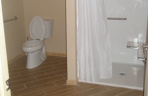 Bedroom 3: Main floor – 1 Queen size bed 1 Queen size platform bed, 32' flat screen TV. Bedroom 3 is on the main floor and right next to the ADA compiant bathroom.