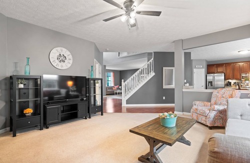 Each of the four bedrooms provides a cozy & private retreat, and walk-in closets, while the two and a half bathrooms ensure plenty of room for everyone to freshen up. The 4th bedroom has 2 bunk beds (twin over queen).The private patio and fenced-in yard is perfect for outdoor dining, complete with Blackstone type grill, or simply unwinding in between games.