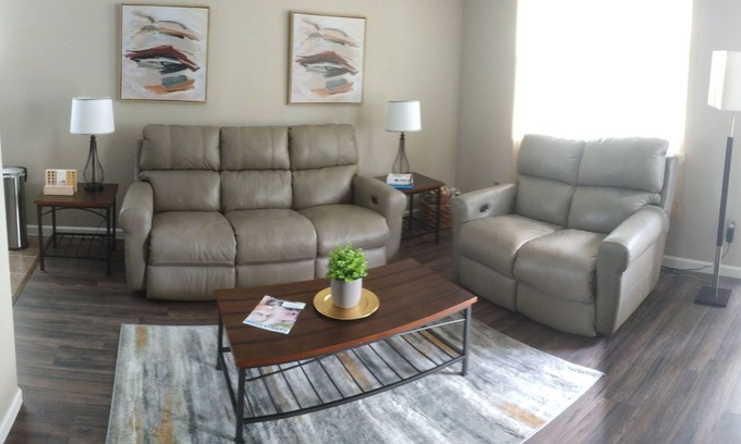 Spacious, clean, newly remodeled with beautiful kitchen, soft close cabinets and all new LG appliances, wall oven. Open concept allowing enjoyable times. Patio cozy with outdoor TV. Bike available for use. 65 in Samsung Smart TV, 60 inch TV downstairs Master bedroom , beautiful master bathroom with large walk in closet. 2nd floor open family room great for kids/ young adults . 3 bedrooms with 40 inch televisions along with Firestick, Roku and Flex(similar to Firestick). Full bathroom with beautiful cabinets, granite countertops. 2car garage available. Great suburban neighborhood, quiet. Many restaurants and shops. Minutes from Katy Mills Mall.