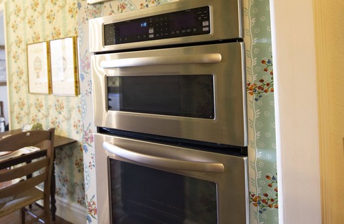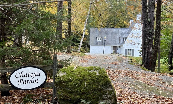 At the end of a tree-lined drive, you'll find Chateau Pardot nestled on 6 secluded, wooded acres with THE best view in Stowe! Take a step back in time as we welcome you into our ~4,000 square foot home that's been in our family for more than 30 years. It's filled with antiques and decor that we hope feels more like home than a rental property. There are many nods in the artwork and fixtures to Stowe's annual hot air balloon festival. Antique European doors were hand-selected and retrofitted for the home. The wooden beams in the living and dining areas were salvaged from an old Canadian barn. Patterned terracotta tile floors grace the main level and parquet hardwoods in the remaining areas. The St. Charles kitchen is always a conversation piece!