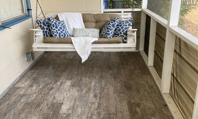 Enclosed screened porch with swing is a great place to enjoy your coffee. Or sit at the table for 2 and enjoy breakfast over looking the flower garden with butterflies.