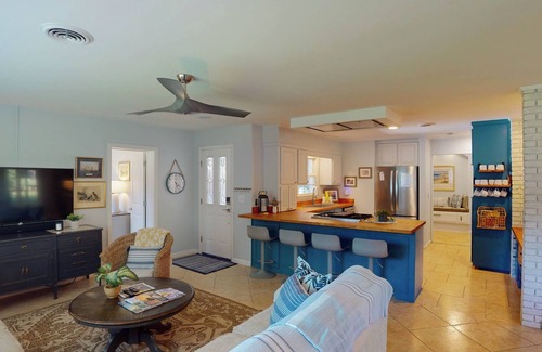 The family room, all bedrooms, and the screened in porch are furnished with smart TVs and Xfinity cable. WiFi mesh coverage is excellent throughout the home making it work-friendly. A land-line phone is provided in case your cellular carrier’s coverage is not satisfactory on the island.