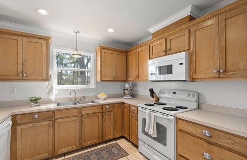 For those traveling with little ones - The Salty Dog is packed with amenities for the youngest of travelers. In the Twin Bedroom, you'll find a TV connected to a DVD player, stocked with a variety of Children's Movies including beloved Disney classics, and a Wii game console for Netflix access. Additionally, the twin room offers a toy box and closet with a variety of toys, while the nearby hallway houses a bookcase filled with Children's Books. Also, check out the kitchen drawer for coloring books and crayons. The bathroom linked to the Twin Bedroom, as well as the downstairs half-bath, feature a convenient step-stool, ensuring little ones can easily reach the sink. We've also got you covered with 2 portable booster seat/high chairs, child-size cups and utensils, and 2 umbrella strollers. While we provide a crib-size mattress, please note that a crib itself is not included (remember to bring your own crib bedding).