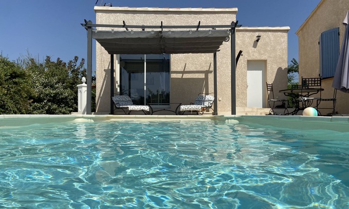 100% self-contained studio at the foot of the Dentelles de Montmirail is located in Violes. 100% self-contained studio at the foot of the Dentelles de Montmirail provides accommodation, featuring Air Conditioner, Pool, TV, among other amenities. This Apartment features Air Conditioner, Pool, TV, to make your stay a comfortable one.