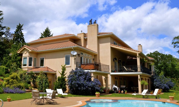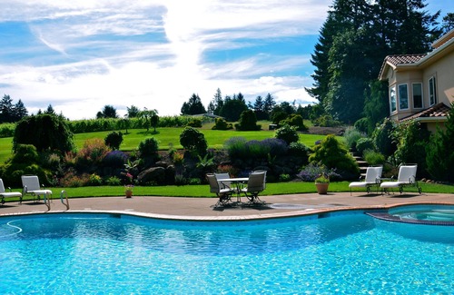 Fruit orchard and 400 blueberry bushes, wild blackberries and our winery a short walk through the vineyard down the hill. Plenty of walking/hiking available on property and in the Eola Hills. We designed and built our home and moved in 2003. We reside here 6 months of the year. We planted our vineyard in 2001, built our Winery in 2007 and did all of the landscaping along the way. *Pool Heated seasonally, during October 15th to May 15th there is a fee if you want the pool heated* House CAN accommodate up to 20 overnight guests with an added fee of 100 per night per person above the normalized listing