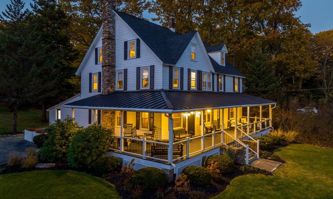 What once served as a hotel dating back to 1875, this icon of American recreational architecture has been restored and is inspired by an idyllic sense of relaxed living. Enter through the spacious wraparound porch to the 6000 sq. ft. Lodge and you are welcomed by a large living room with plenty of seating to unwind and enjoy the wood fireplace or watch a movie on the 75-inch smart TV. Two large dining rooms will seat your oversized family or a great set up for catered meals. Kitchen is fully stocked for your cooking needs with 2 ovens, side by side Fridge and freezers, dishwasher, coffee station, and a large kitchen island offering additional seating. Off the kitchen, step into the game room with a regulation size slate pool table, 75-inch smart TV, a full bathroom, and Laundry Room. The game room provides access to the back patio, perfect for a backyard BBQ, and enjoying our luxury Swim Spa, able to seat up to 11 people! There is a basketball court, large backyard, and several outdoor seating areas throughout the property. You can also explore and walk through our family friendly trail while on the property.
