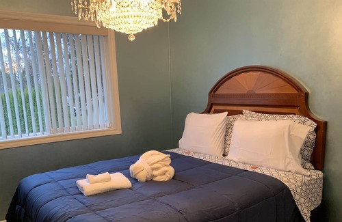 The space features a comfortable private living room with 6 lounge seats, a ceiling fan, Roku TV, gas-powered fireplace, coffee table, as well as a computer desk & chair! There's a breakfast table with 3 seats in the kitchen, as well as a separate high-quality wooden dining table with 6 seats. The kitchen is fully-stocked with dishes, pantry items, spices, coffee & machine, assorted teas, and any appliances you need - just let us know what items you want when booking. Please contact us with any questions.